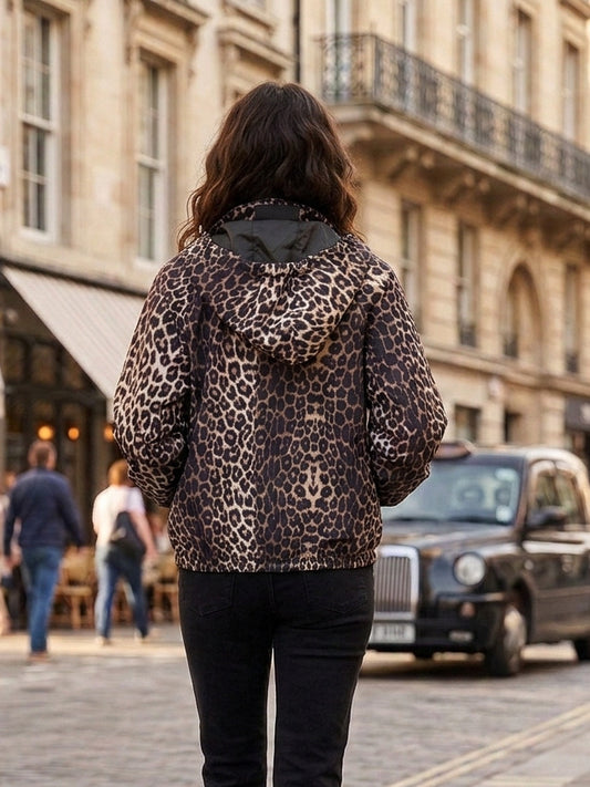 Chaqueta Cortavientos con Estampado de Leopardo