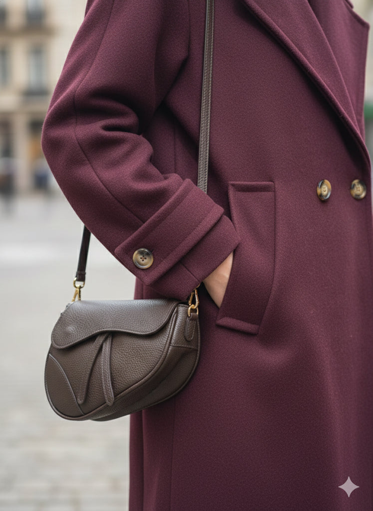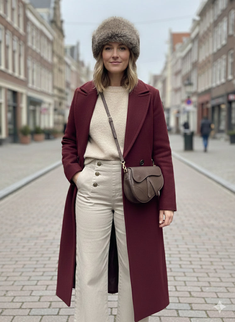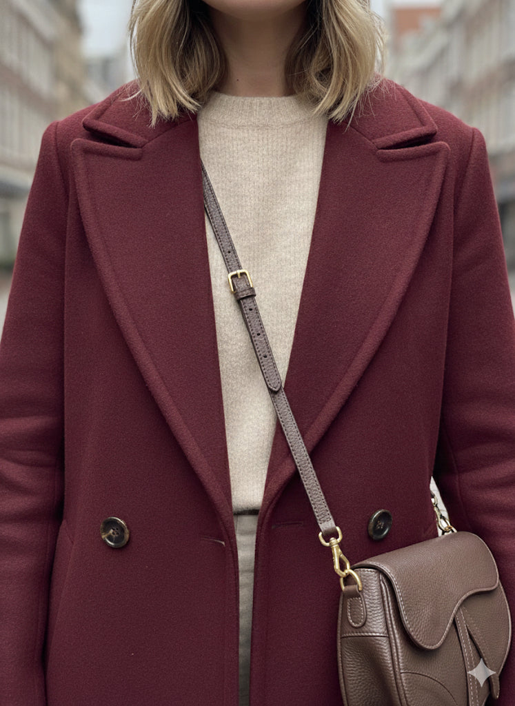 Presentamos nuestro Abrigo Largo de Lana Premium en el exquisito y profundo color Vino Tinto