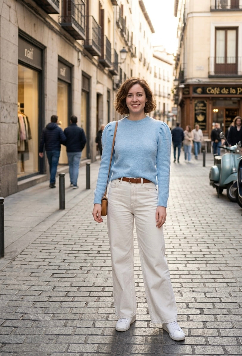 • Mangas Abullonadas Distinctivas: El elemento más destacado de este jersey son sus mangas abullonadas, meticulosamente fruncidas en los hombros para crear un volumen romántico y estructurado que añade feminidad y un estilo contemporáneo a la prenda.